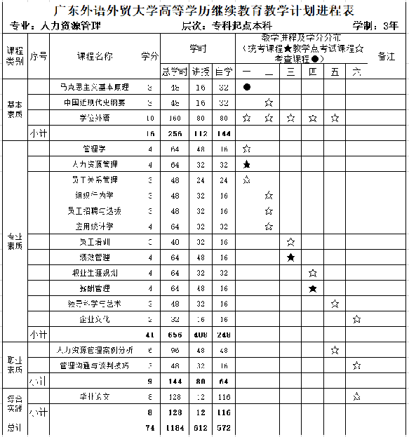 基本学制:3年; 学习形式:业余或函授