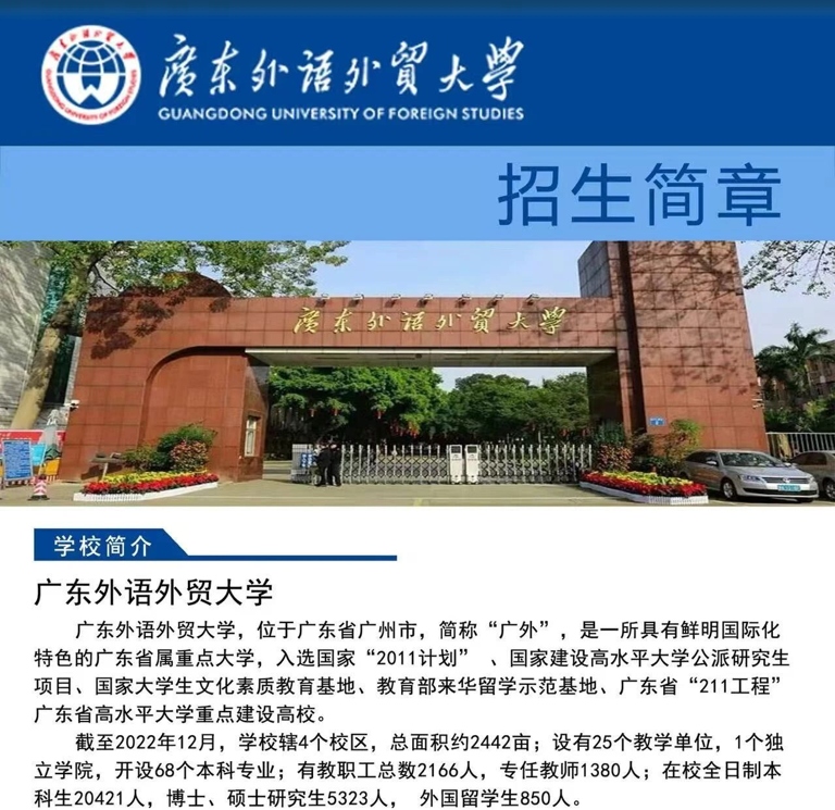 本文将为大家详细梳理广东外语外贸大学成考招生简章有需要的同学注意时间安排一、广东外语外贸大学简介(1)简介广东外语外贸大学(Guangdong University of Foreign Studies),...