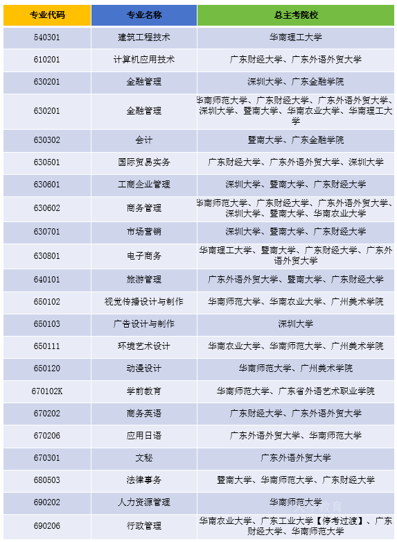 华南理工大学、华南师范大学【停考过渡】、广东财经大学、广东外语外贸大学、深圳大学、暨南大学 |