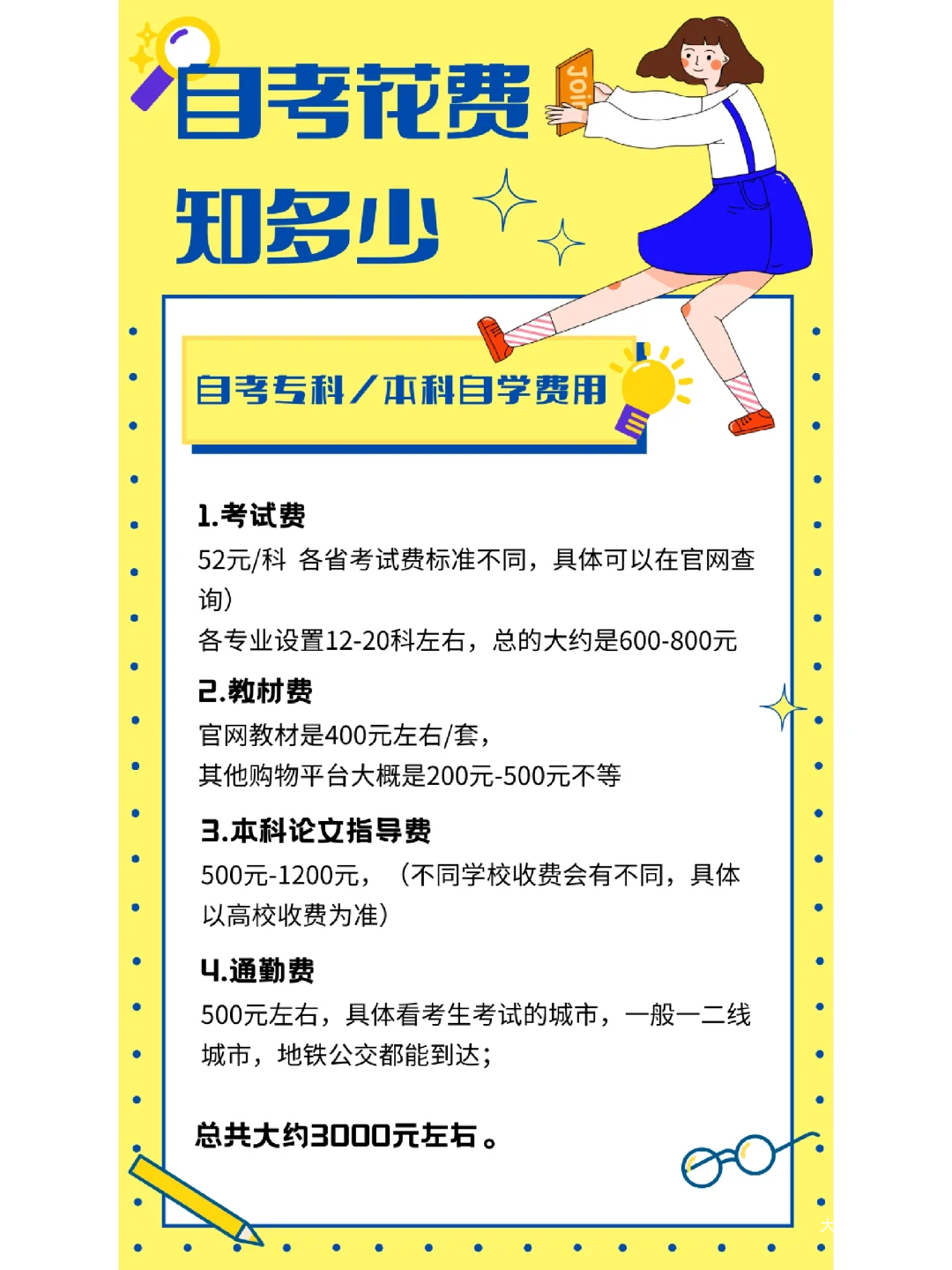 自学方式相对于报机构来说,依赖个人,费用相对较低。主要包括购买教材费用、每科30-60元的报名费,加上实践课费用、论文指导费用等,总额大致在2000-3000元。虽然这种方式相对省钱,但效率较低,常常会出现补考或者弃考的情况。所以,如果学习基础薄弱,不建议采用这种方式。