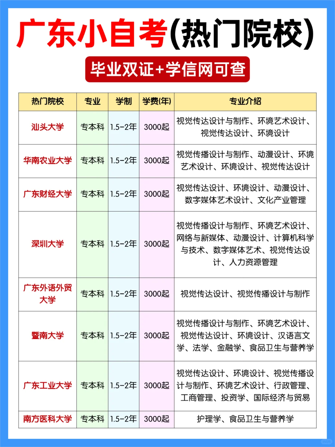 2. 广州可以报考的小自考专业:视觉传达设计、环境设计、动漫设计、视觉传播设计与制作、环境艺术设计等。