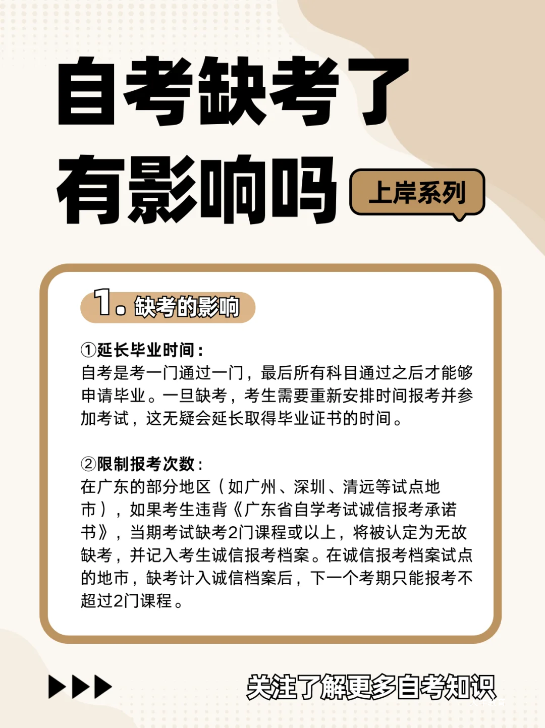 缺考不会对自考毕业造成直接影响,但会限制考生下次报考的次数,最多只能考两门。长时间缺考需申请档案修复,考生只要继续参加考试并通过所有科目,就能顺利申请毕业。