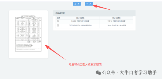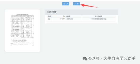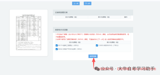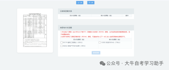 注意事项:该项默认勾选的顶替关系,是根据考生现有成绩系统默认推荐,无法自行勾选及取消。如无成绩,则该列表显示为空,点击【下一步】即可。