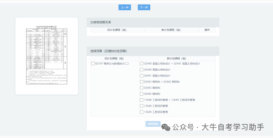如选择“毕业预测”,点击下一步后,会直接跳过顶替选择,直接进入“第六步毕业预测”。如选择“课程顶替”,则会进行顶替选择。