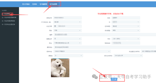 以行政管理本科顶替说明为例子: