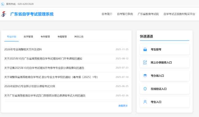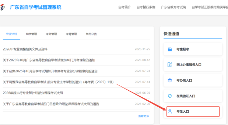 报名入口:广东省自学考试管理系统 :https://www.eeagd.edu.cn/zkselfec/