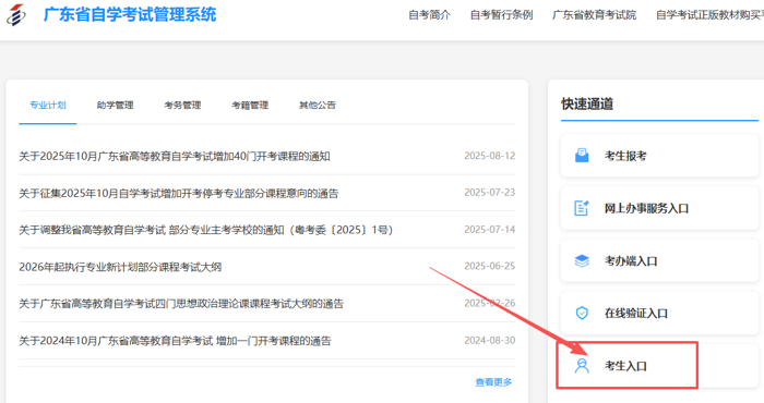 1、准考证打印入口:广东省自学考试管理系统:https://www.eeagd.edu.cn/selfec/