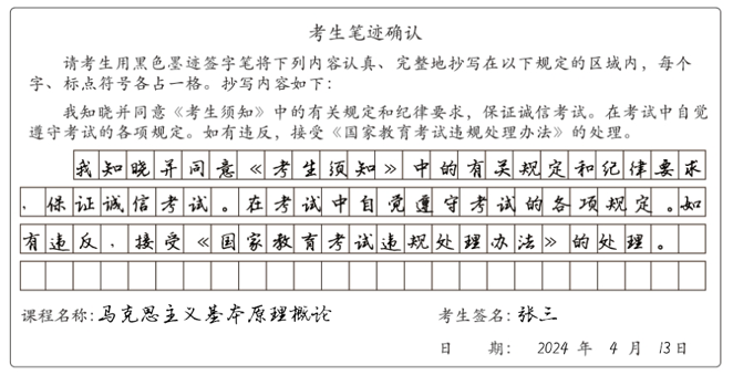 因为咱们的自考都有笔迹确认环节,很多第一次考的同学可能不清楚。